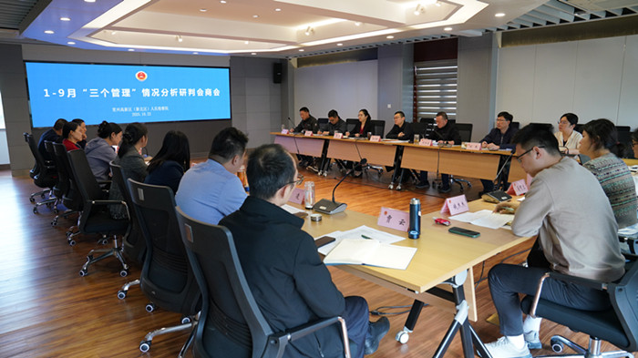10月22日下午,新北区院组织召开“三个管理”情况分析研判会商会,专题研判1-9月办案质效,研究改进措施,明确冲刺方向。院领导班子全体成员、各部门负责人参加会议。